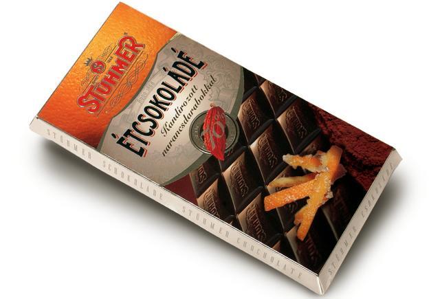 Étcsokoládé kandírozott narancsdarabokkal, 100g Étcsokoládé kandírozott narancsdarabokkal, 100g |